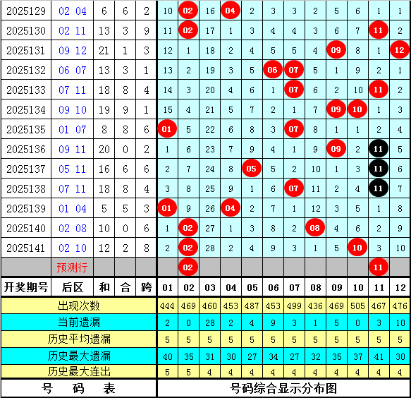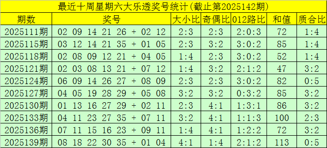后区分析:最近10周星期六一大一小开出3次,全大开出4次,全小开出3次;全偶开出1次,一奇一偶开出6次,全奇开出3次,本期后区注意两码02+11。