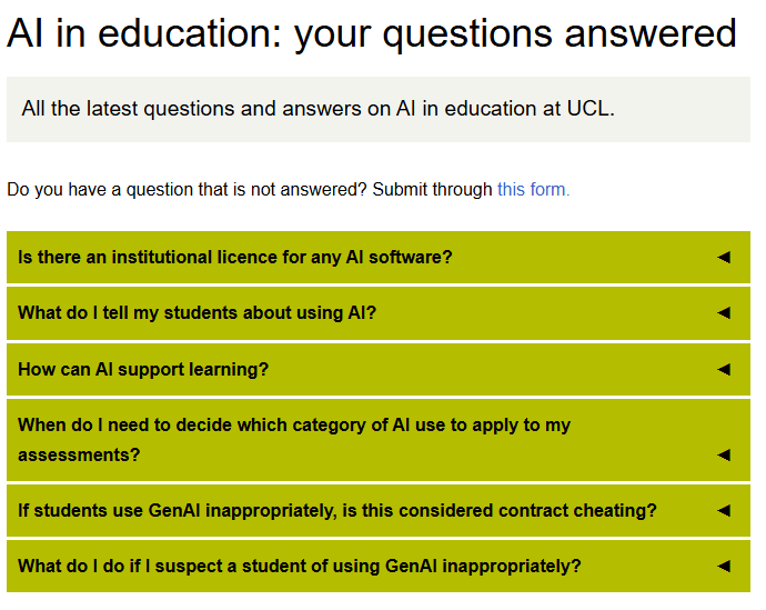 UCL 制定《生成式 AI 教学框架》,要求教师在课程大纲中明确标注 AI 使用政策。同时提供教师培训,帮助他们设计适合 AI 时代的作业和考核方式。