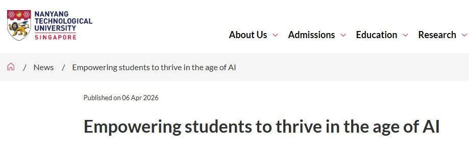 2026 年 4 月 6 日,新加坡南洋理工大学(NTU)正式发布了 “2030 AI 教育转型蓝图”。